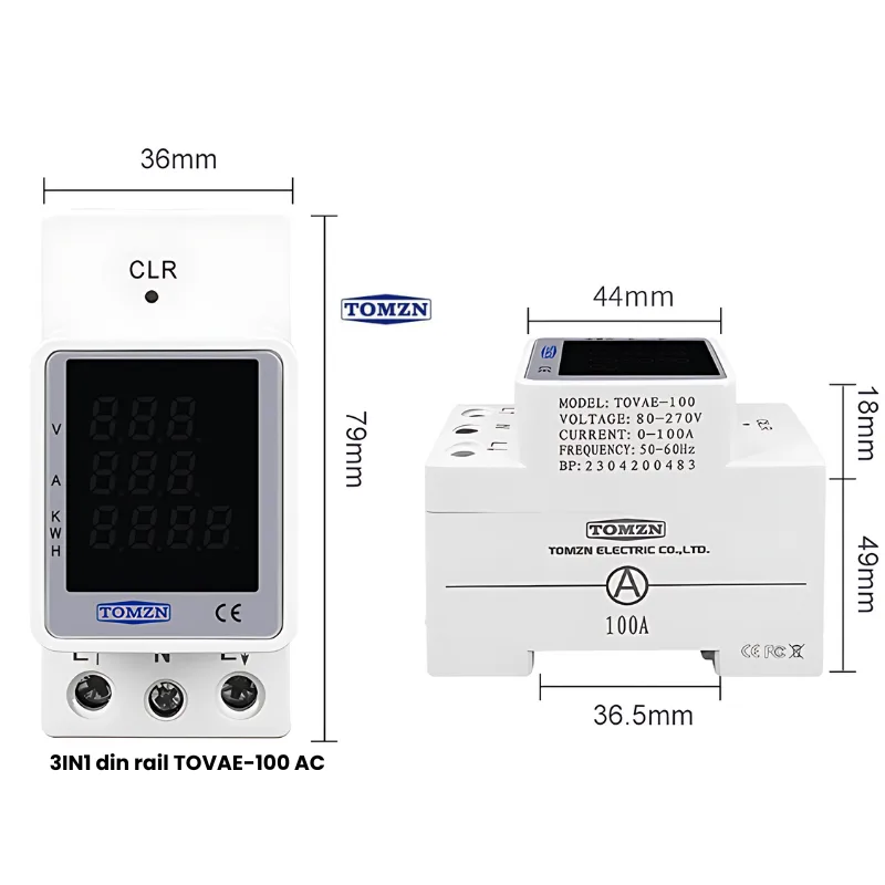 The TOMZN TOVAE-100 AC 3-in-1 Din Rail Voltage Protector is a high-capacity safety device designed to protect your home and commercial appliances from harmful voltage fluctuations. With protection against over-voltage, under-voltage, and built-in delay, this device ensures your appliances remain safe during unstable power conditions.